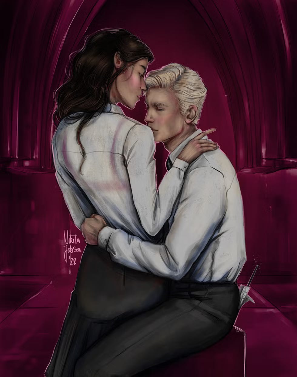 La pubblicazione di fanfiction è un processo consolidato nell’editoria. L’anno scorso sono usciti ben tre libri – e solo nel panorama mainstream – ispirati alle fanfiction Dramione, un’etichetta usata nel mondo delle fanfiction di Harry Potter per riferirsi alle storie che hanno come coppia principale Draco Malfoy ed Hermione, due protagonisti della saga. Sto parlando di Alchemised, che è stato anche un caso editoriale piuttosto discusso, ma anche di Rose in chains di Julie Soto e Come (non) innamorarsi del nemico di Brigitte Knightley, dove anche la copertina strizza l’occhio alle sembianze dei due personaggi originali. Che, però, è l’unica cosa rimasta della storia originale di J.K. Rowling, visto che per motivi di copyright tutti i riferimenti all’universo potteriano dovevano sparire. E qui veniamo un po’ al nodo della questione. Un nodo anche etico. Sempre più spesso, infatti, le case editrici fanno scouting – ma nemmeno troppo accurato – online, ricercando proprio nel mondo delle fanfiction più lette e seguite il prossimo bestseller. Il motivo è scontato: sono storie che hanno già un pubblico affezionato e pronto a una spedizione in libreria per supportare l’autrice.