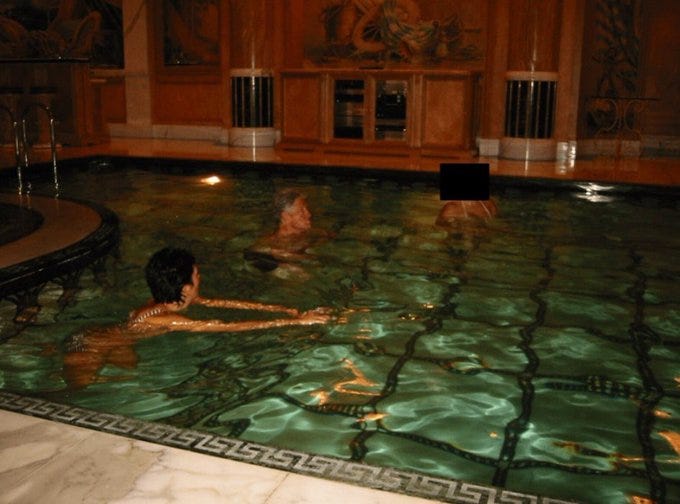 Il perturbante epsteiniano è impregnato di odore di disinfettante e pizze a domicilio che aleggia su camere da letto, saune, zone palestra, bagni in marmi bianchi, riempiti con lettini da massaggio, boccette di oli essenziali e creme costose, pile di asciugamani di spugna, cuscini e lenzuola per gli ospiti. A completare il quadro: piscine, maschere inquietanti appese alle pareti, una quantità spropositata di fotografie di celebrità decontestualizzate, appartamenti labirintici e tappezzerie floreali.