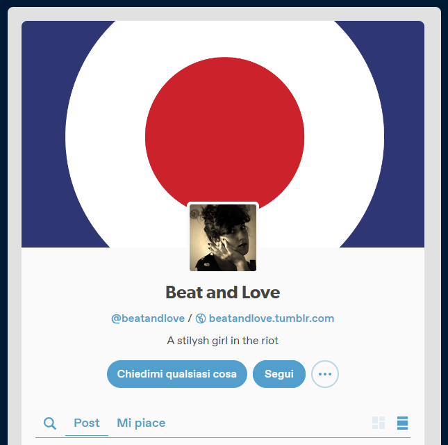 Capisco che “Beat and Love” possa risultare un po’ strano, con echi dell’epoca dei bimbominkia, forse poco appropriato per una millennial di mezza età, “giornalista e social media analyst che scrive di fenomeni online e pop culture”. Ma c’è una spiegazione: ho un nome (Laura Fontana) molto comune, non dico come Maria Rossi, ma quasi. Online è pieno di mie omonime: c’è una Laura Fontana che è un’accademica importante esperta in studi sulla Shoah, e c’è un’altra Laura Fontana in Brasile che a quanto pare è una sosia famosa di Lady Gaga. È dal Duemila che non sono mai riuscita a iscrivermi da nessuna parte col mio nome e cognome. Al massimo, potevo usare “Laura Fontana” ma aggiungendo altri numeri e underscore e caratteri speciali, dunque veniva fuori qualcosa tipo lauraf0nt4n4_666. Prima di aprire Tumblr, messa di nuovo di fronte al solito dilemma, ho fatto un brainstorming con me stessa nel tentativo di tirare fuori un’idea semplice, possibilmente ripetibile su altre piattaforme. Mi sono chiesta, “Laura, a te cosa piace?”. E la risposta è stata: la musica rock. Magari avrei potuto giocare con “rock’n’roll” (stesso percorso logico che deve aver fatto l’influencer Giulia Torelli, che poi si è scelta come nome “rockandfiocc”). Ma con cosa avrei potuto sostituire il “rock” e il “roll”? La prima parte è venuta facile: i Beatles sono la mia band preferita. Sulla seconda parte, devo aver semplicemente perso la pazienza, appellandomi infine a Dante Alighieri e a l’amor che move il sole e l’altre stelle. Questa è la genesi di “Beat and Love”. Miracolo: beatandlove era uno username disponibile su tutti i social media.